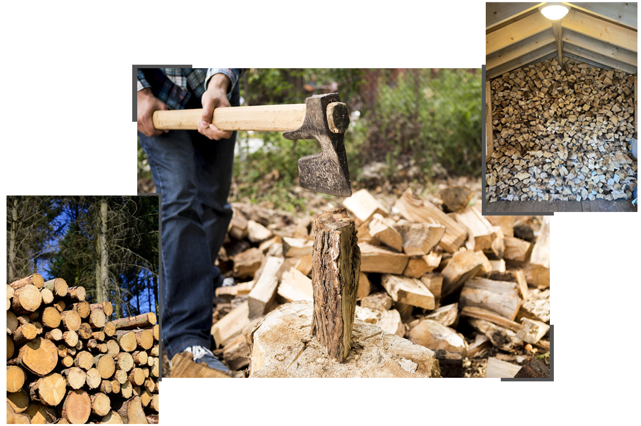 seksjonsfelling, flising, vegetasjonsrydding, vedsalg og hagearbeid –
